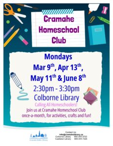 View the Monthly Calendar: cramahelibrary.ca/calendar