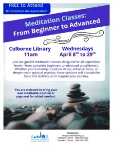 -> 11:00am – 1:30pm at Colborne Library - Creative Wellness Workshops (Oct 10th, 17th & 31st)